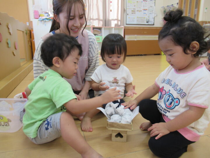 「今日はお月見!お月さまがとってもきれいな日」と紙芝居や絵本の読み聞かせの活動を子どもたちと楽しんだ後・・・