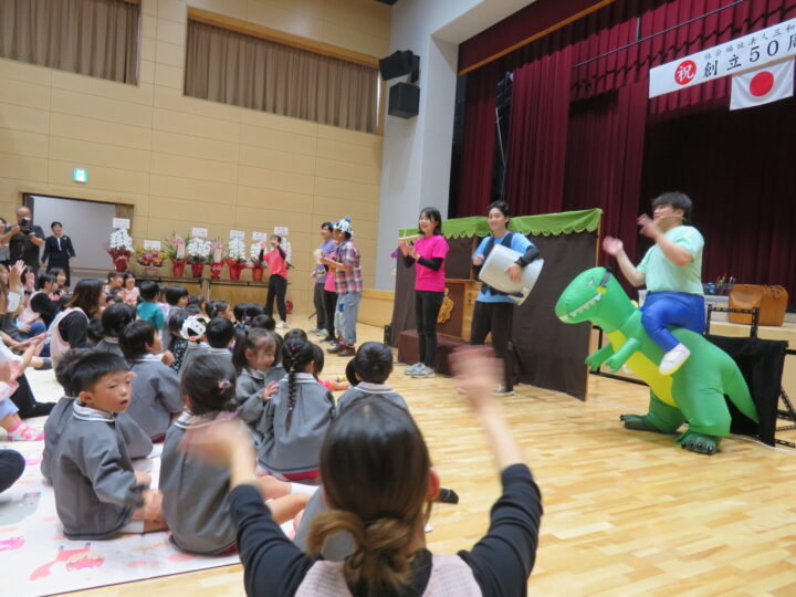 エンディングでは高濱先生が園の50周年記念の歌をアレンジして作って下さり全員で大合唱し幕を閉じました