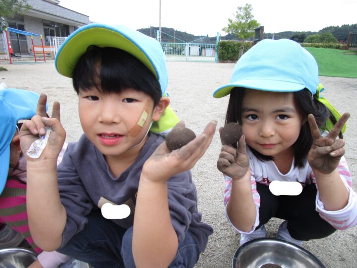 「チョコレートみたい🍫💗」「食べたいなぁ💕」と、つぶやきながら感触を楽しむかわいい子どもたち💛
