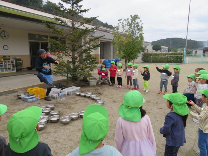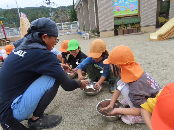 先日の50周年式典に続き、高濱先生が12日(水)にこども園に遊びに来てくれました。「ピカピカ光る泥団子」作り遊びのご指導を3歳以上児にしてくれました。😊