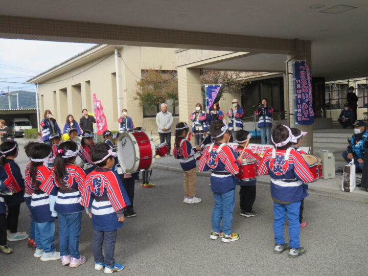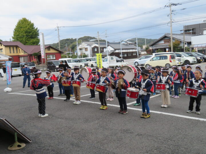 JA大分安岐支店で出発式をしました。らいおん組による鼓隊演奏はみんな真剣な表情でかっこよかったです。