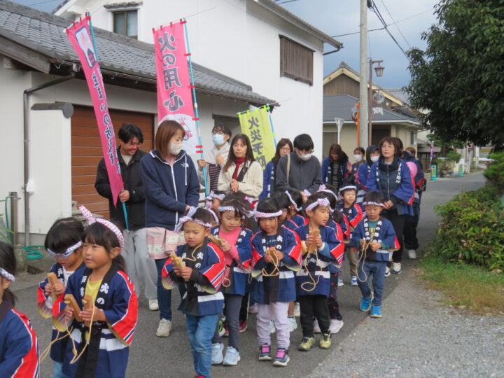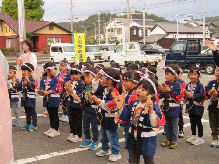 11月18日に国東市消防局主催の幼年消防クラブのパレードにぞう組とらいおん組の子どもたちが参加しました。