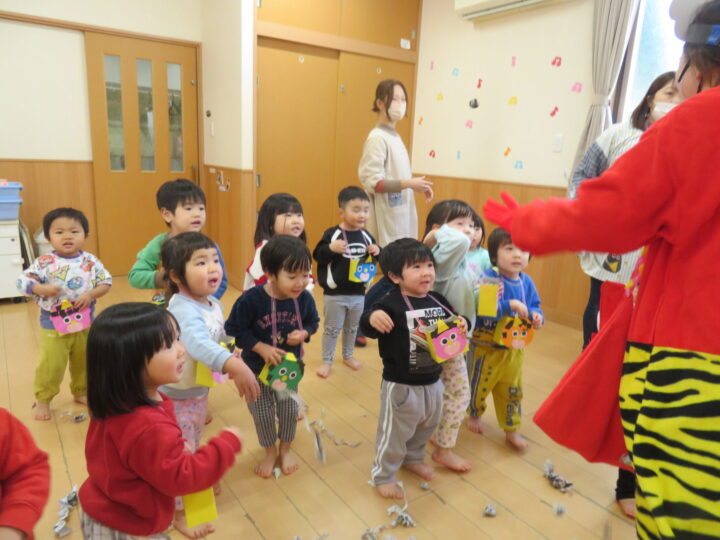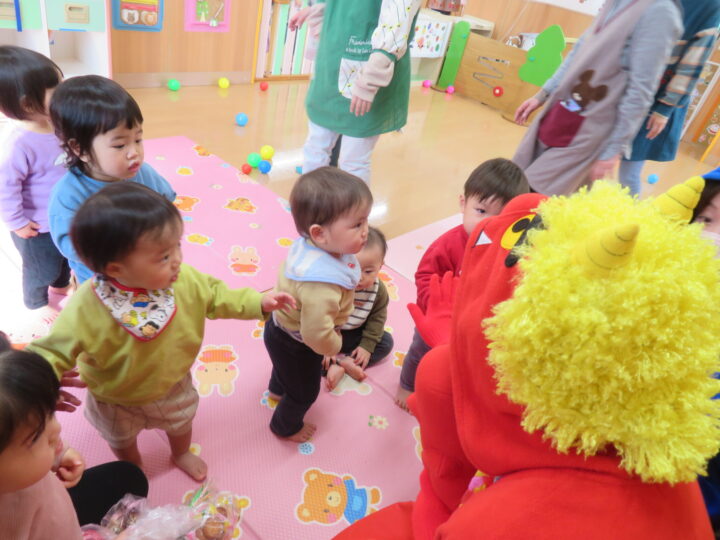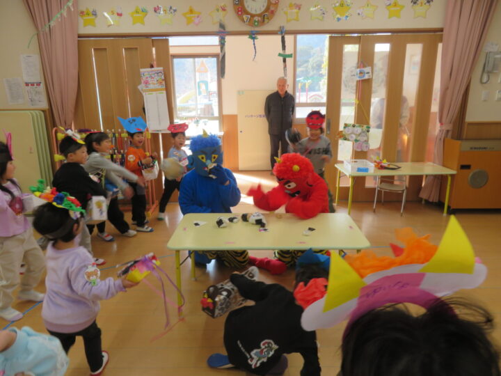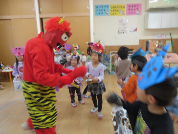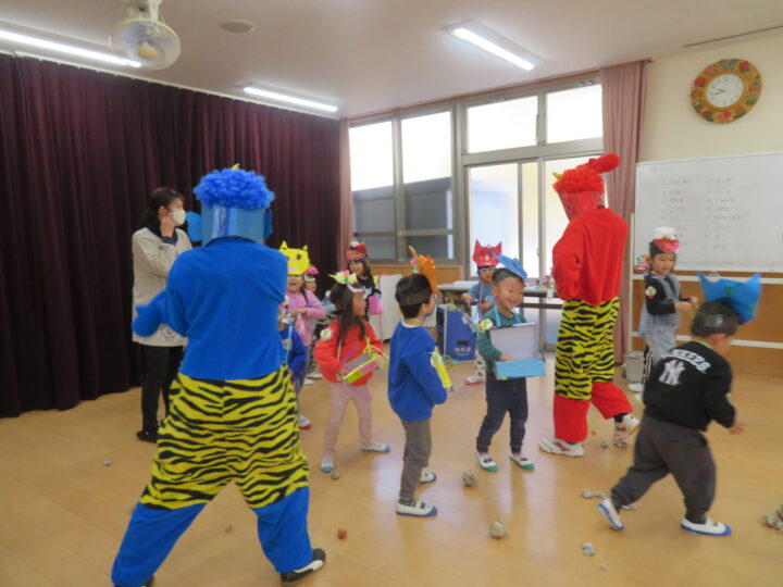 「鬼は外!福は内!」元気な声が聞こえて鬼退治していました😊