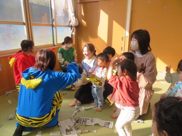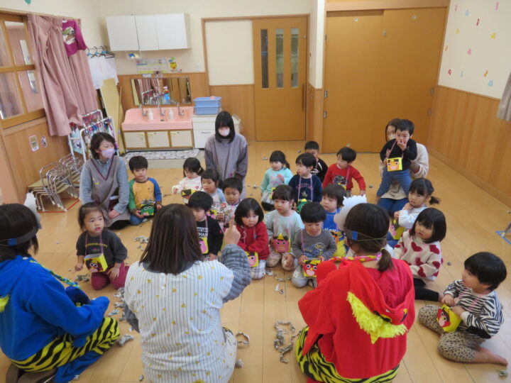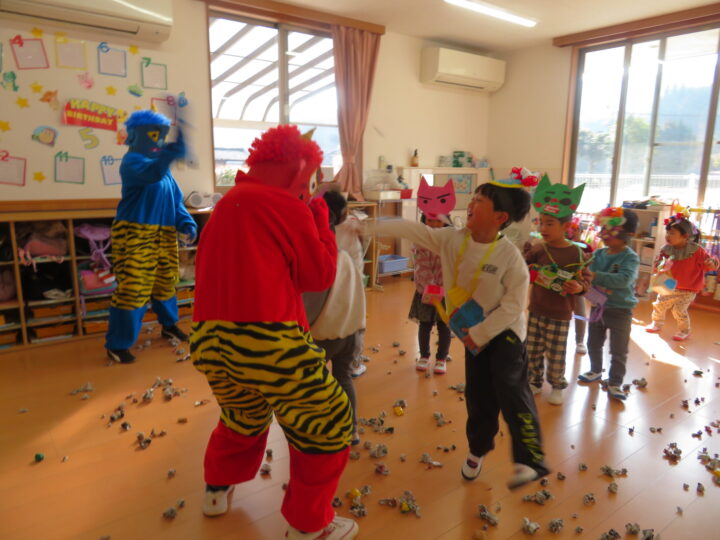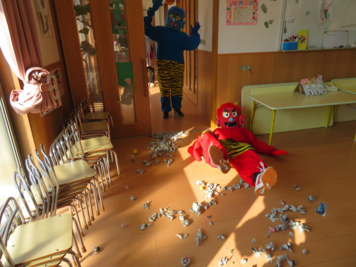 この日までに各グループで「柊」「鰯」や「豆(新聞紙)」を作り、飾りつけや各グループ退治するために作戦も練りました☆