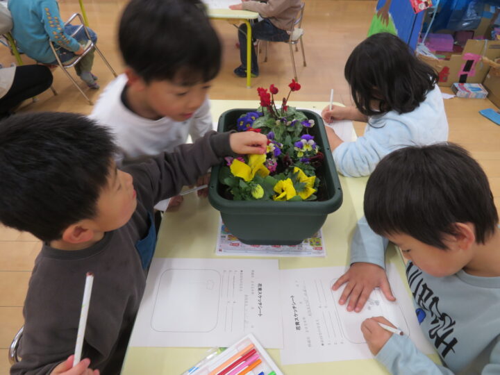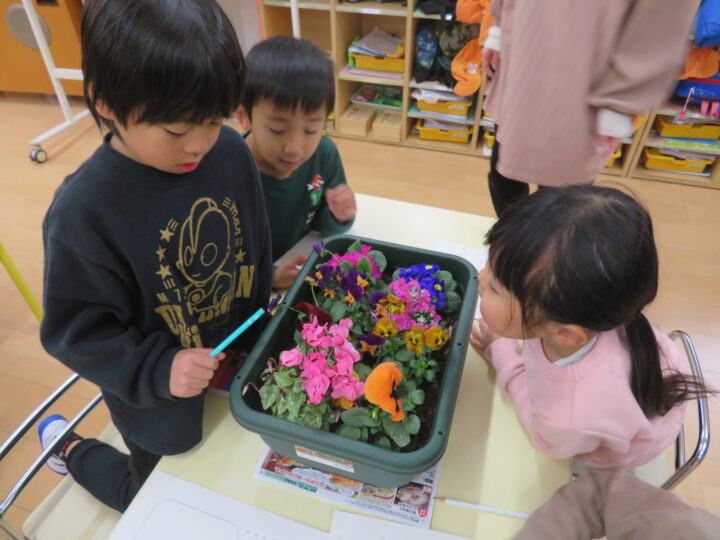 子どもたちは目の前にある花を確認しながら「これ知ってる~」と指差し楽しんでいました