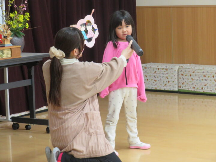 各クラスの代表の子どもたちが、ひなまつり製作で頑張ったことを発表してくれました!