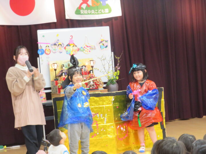 らいおんぐみさんは、手作りの衣装を作り、お内裏様とお雛様になりきって登場してくれました✨